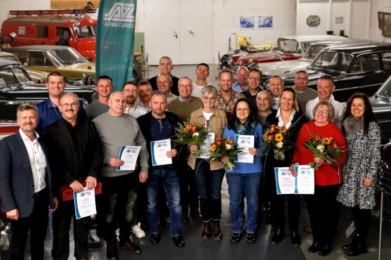 44 long-serving employees with 10 to 40 years of service were honoured for their achievements – a total of 600 years of experience and commitment to AZ Armaturen.